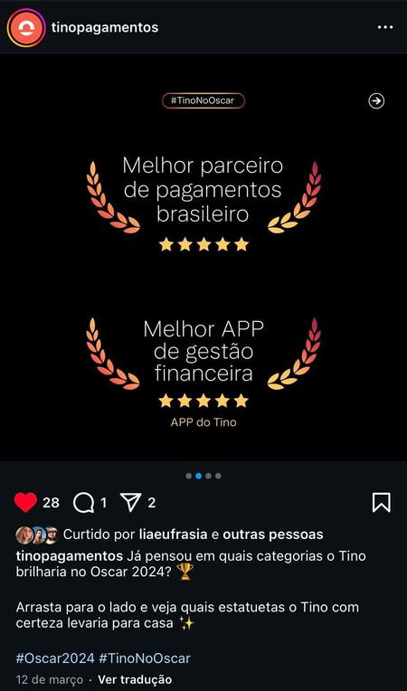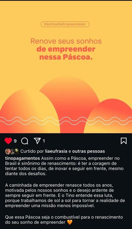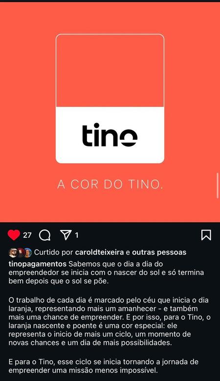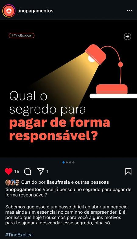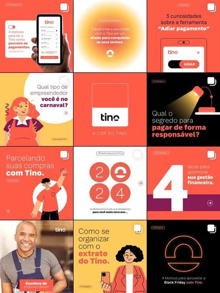 Fintech do ramo de pagamentos e de formato B2B, no Tino eu tinha como responsabilidade olhar diretamente para um dos canais de comunicação (Instagram) com um de seus públicos: pequenos e médios empreendedores brasileiros.